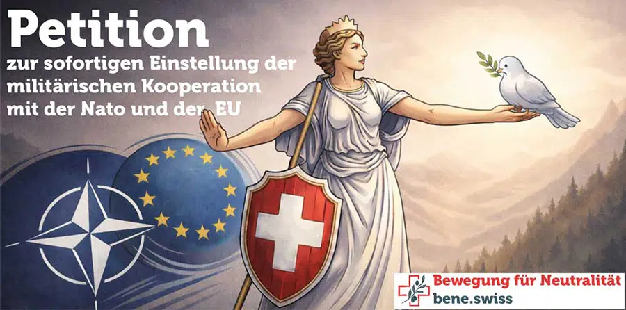 Unterschreiben Sie die Petition an den Bundesrat zur sofortigen Einstellung der militärischen Kooperation mit der NATO und der EU In Anbetracht der Tatsache,  dass die… Weiterlesen